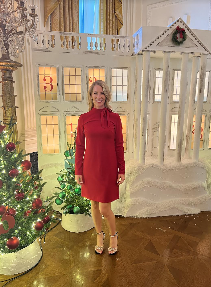 One thing she’ll certainly never forget, and something she can look back on with laughter now, took place withing the first 10 minutes of being at the White House. She was carrying a giant wreath out in a colonnade between the East and West wings, when one of the wreaths swung out and hit the ice cream cone ornaments, causing them to collide like dominoes.