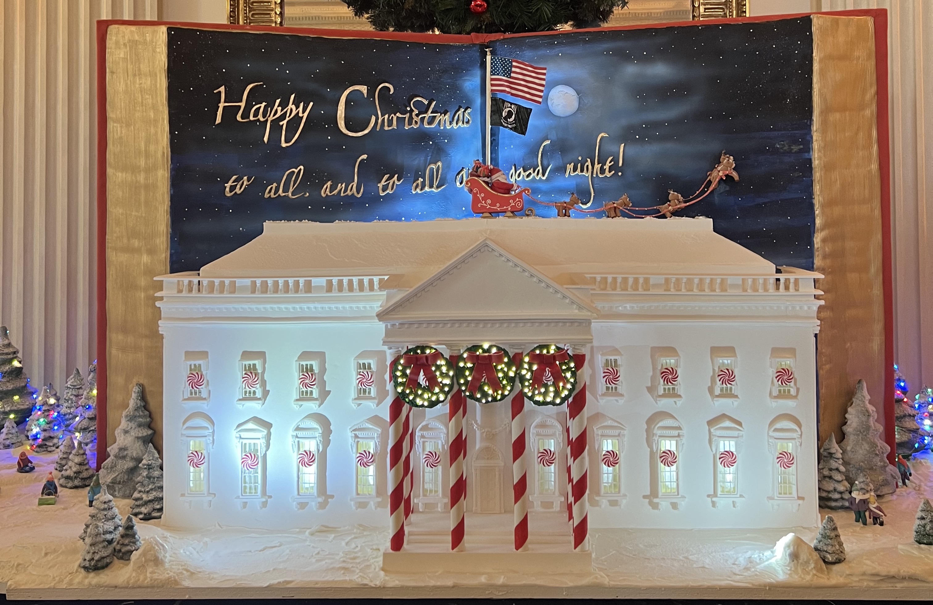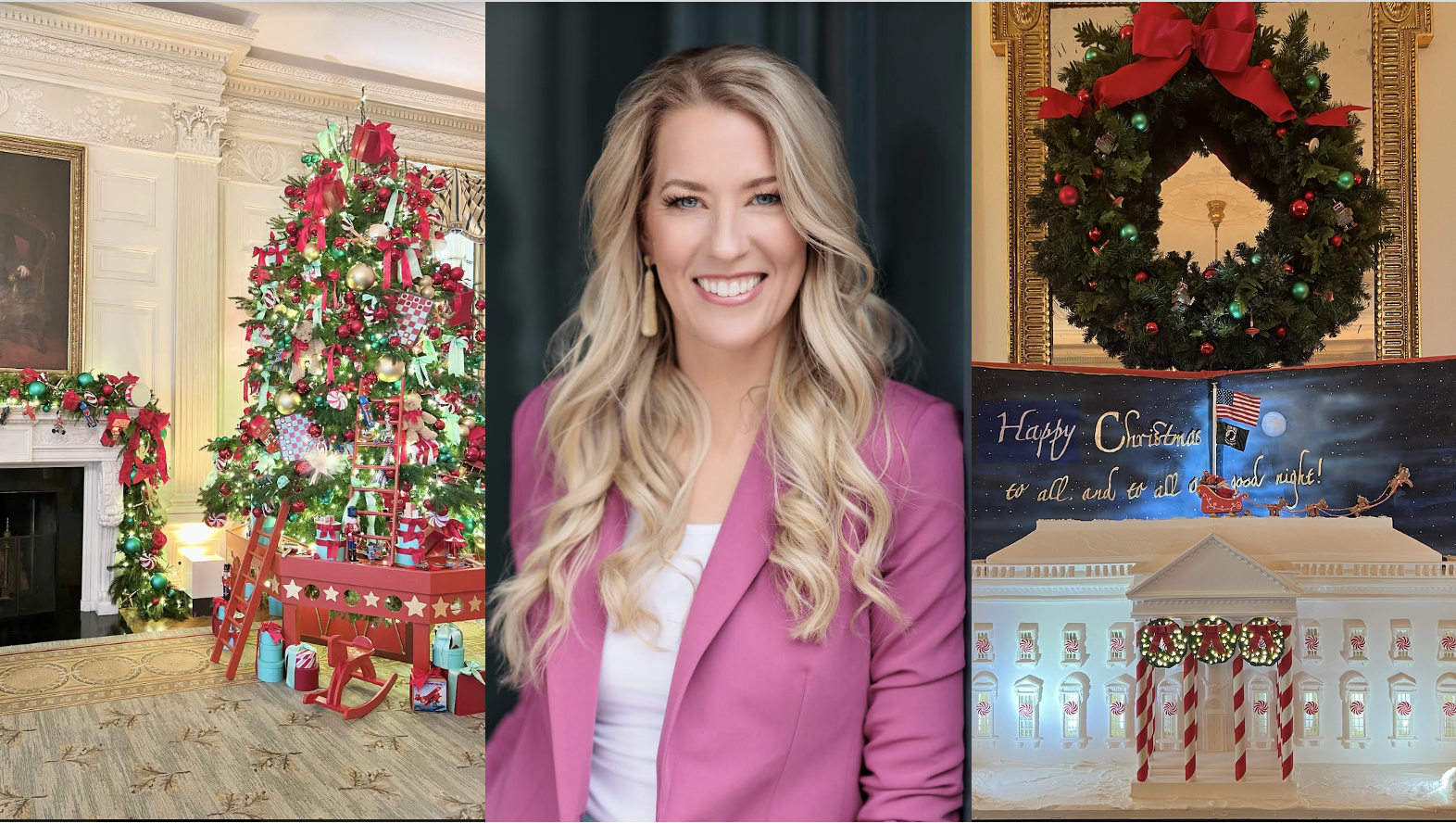 “They have an off-site warehouse that houses all of the decorations in it. Everything was actually pulled prior to us even arriving, so they have 11 semi-trucks full of Christmas decorations that were delivered to the White House,” she says, adding that about 70%-80% of the decorations were recycled from Christmas pasts.