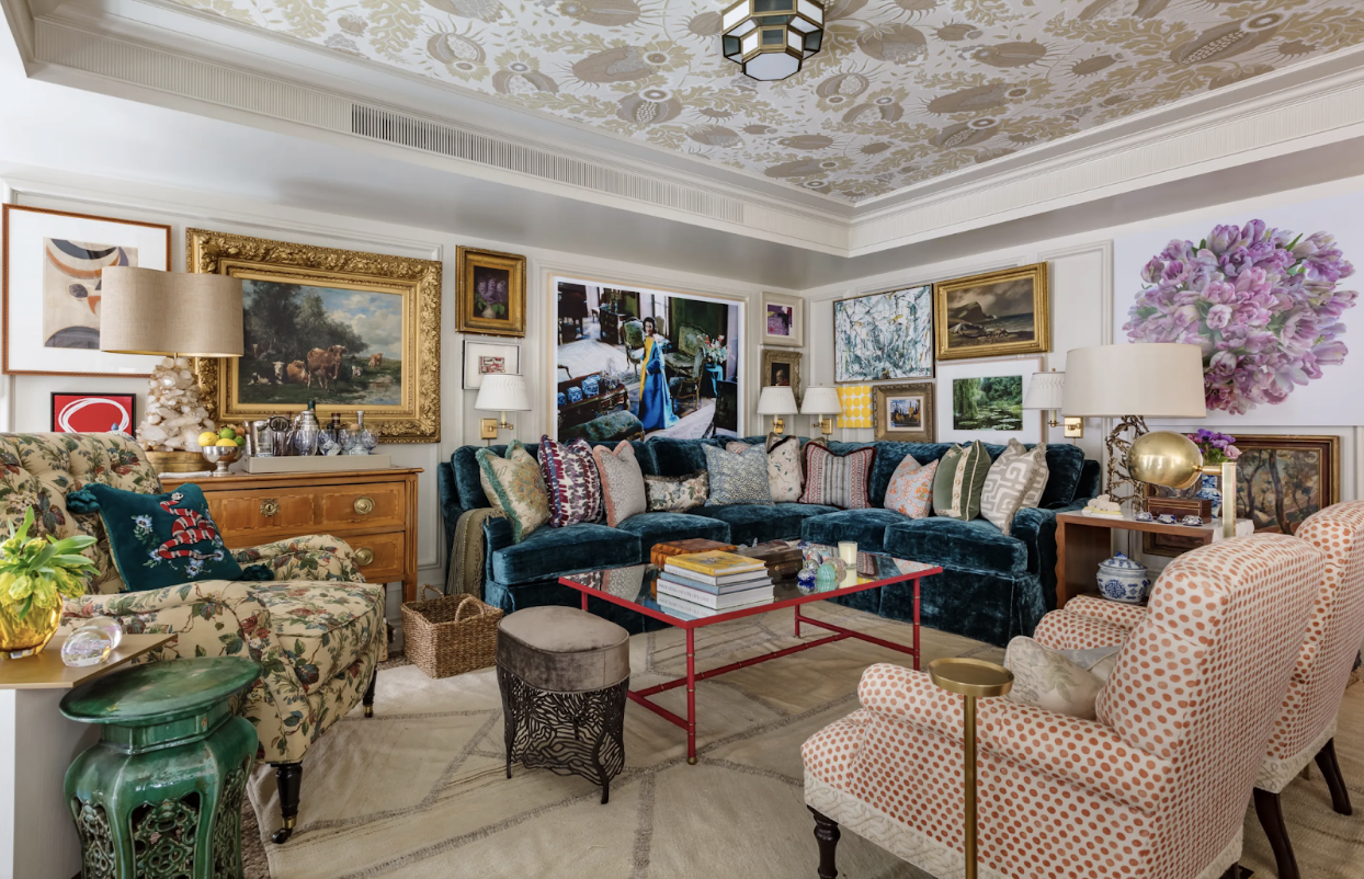 Timothy Corrigan’s Family room for the 2023 Kips Bay Decorator Show House. Photo credit: Nickolas Sargent