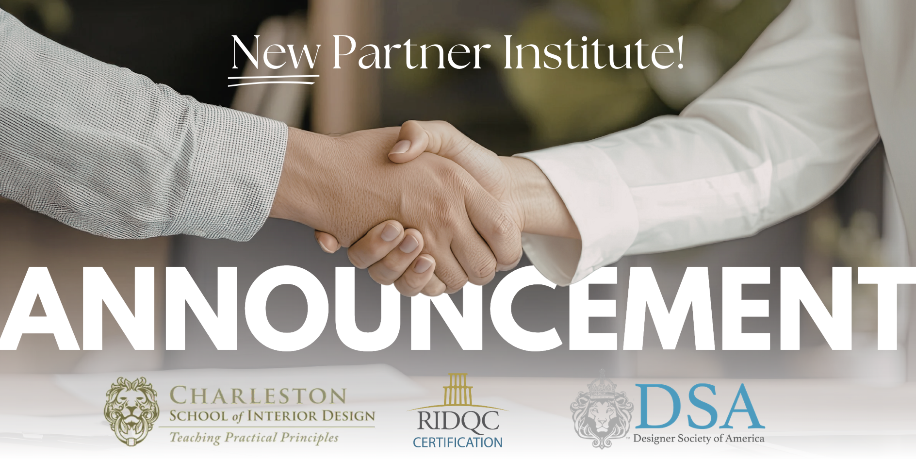 We’re pleased to welcome Charleston School of Interior Design as a new RIDQC Partner Institute. Their commitment to professional interior design education and their integration of DSA and RIDQC into their program reflects a strong alignment with our shared mission of supporting emerging designers as they build confidence, credentials, and community.